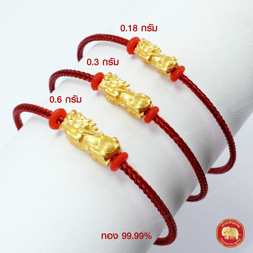 ข้อมือปี่เซียะทอง รุ่นเชือกแดงถัก