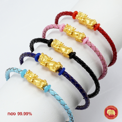 ข้อมือปี่เซียะทอง รุ่นเชือกหนัง